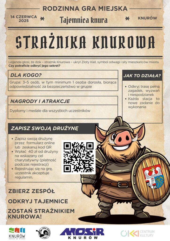 Legenda głosi, że dzik – strażnik Knurowa – ukrył Złoty Kieł, symbol odwagi i siły mieszkańców miasta. Czy potraficie odkryć jego sekret?